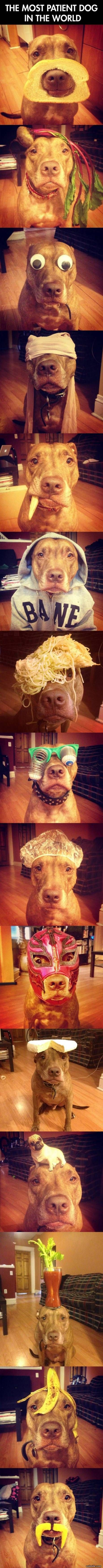 This is possibly the cutest and funniest thing I have seen. Oh my word, the stockings on his head killed me. My Mom has a pittie and our family love them. I have to show my Mom this 😉